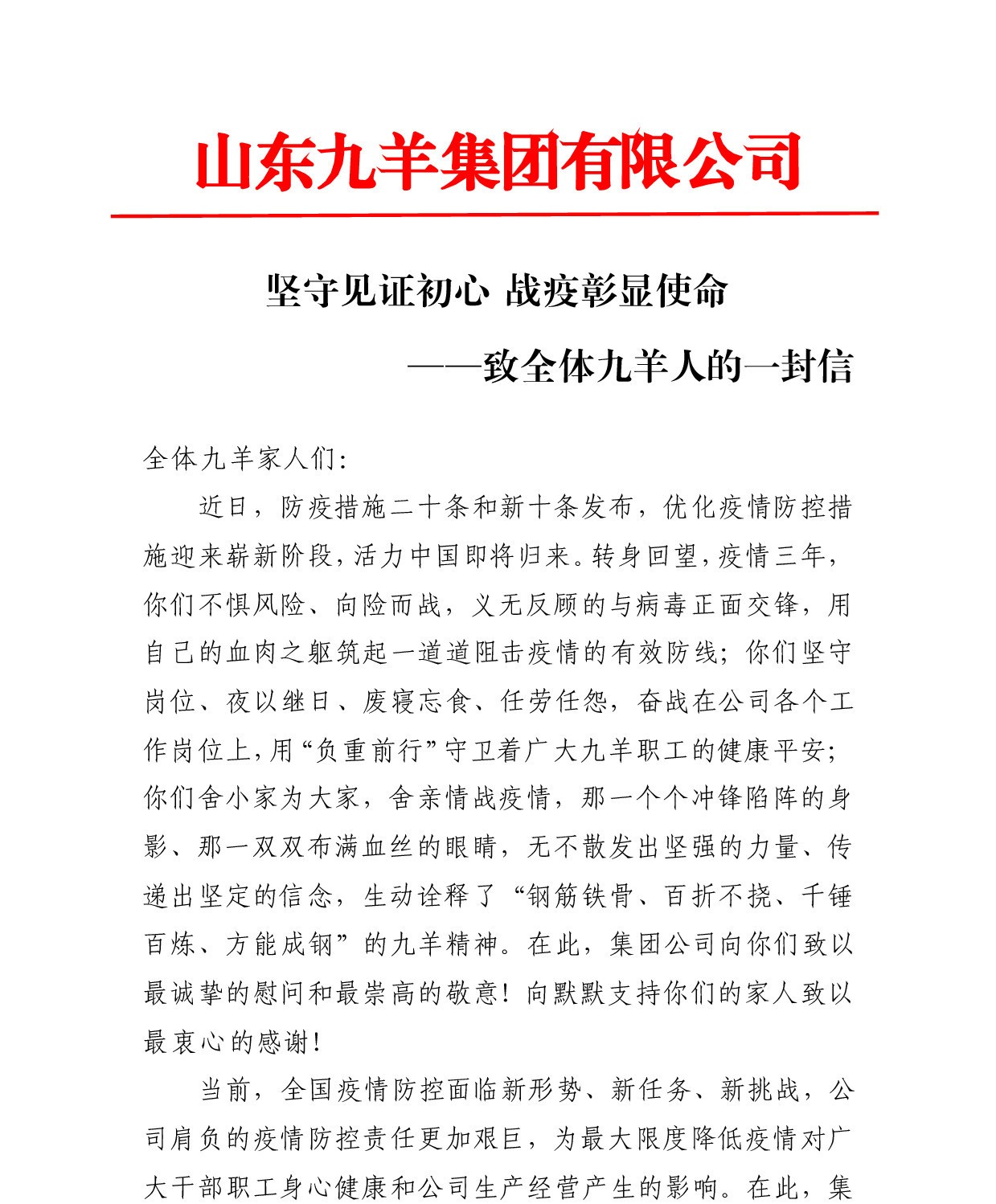 坚守见证初心 战疫彰显使命——致全体ag8国际大厅登录|官网首页人的一封信