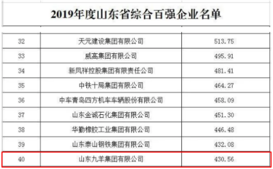 位列山东省综合百强企业第40位
