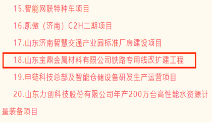 祝贺!山东宝鼎金属质料有限公司铁路专用线改扩建工程、中华嬴秦文化园一期项目入选2022年度市级重点准备项目名单
