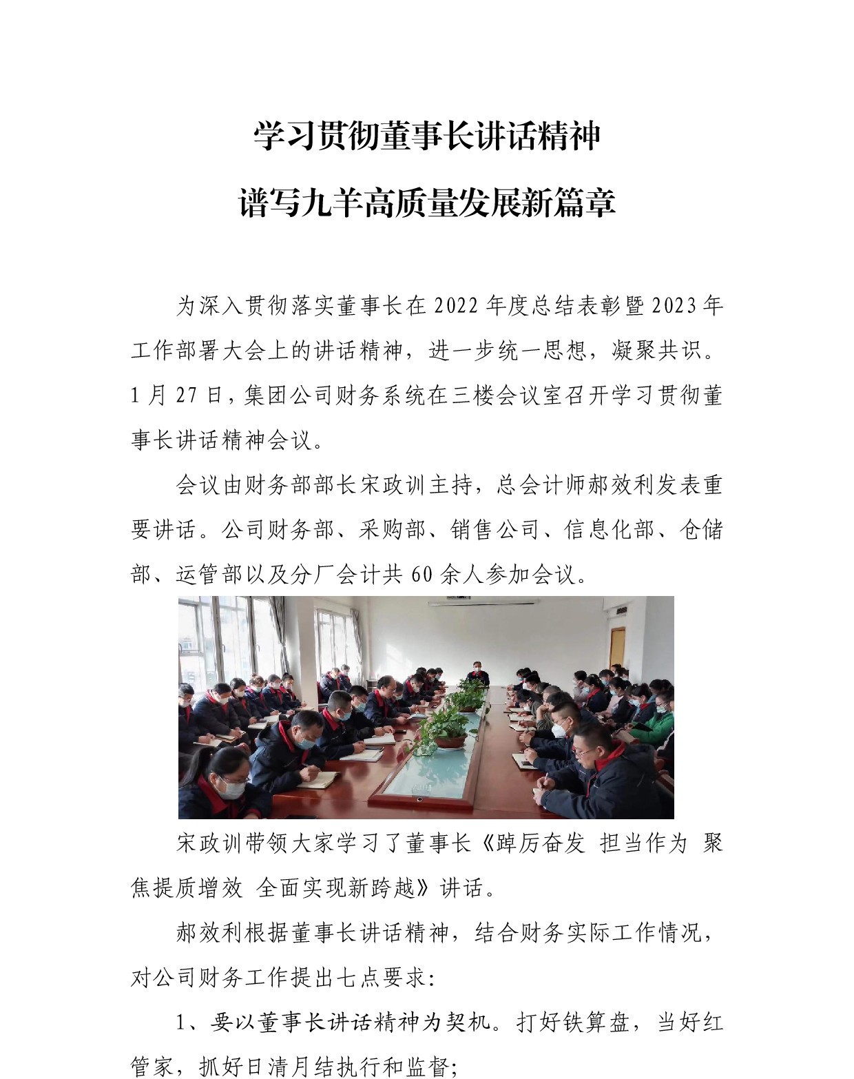 学习贯彻董事长讲话精神 谱写ag8国际大厅登录|官网首页高质量生长新篇章