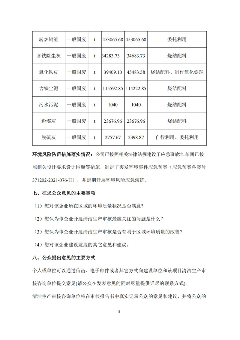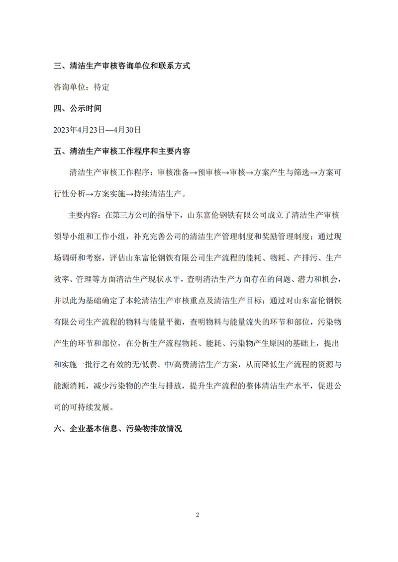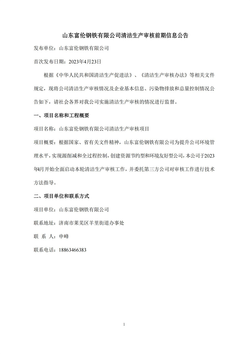 山东富伦钢铁有限公司清洁生产审核前期信息通告