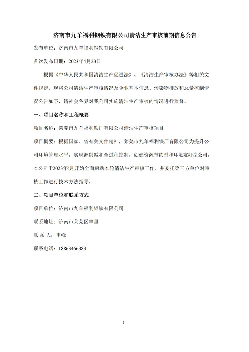 济南市ag8国际大厅登录|官网首页福利钢铁有限公司清洁生产审核前期信息通告